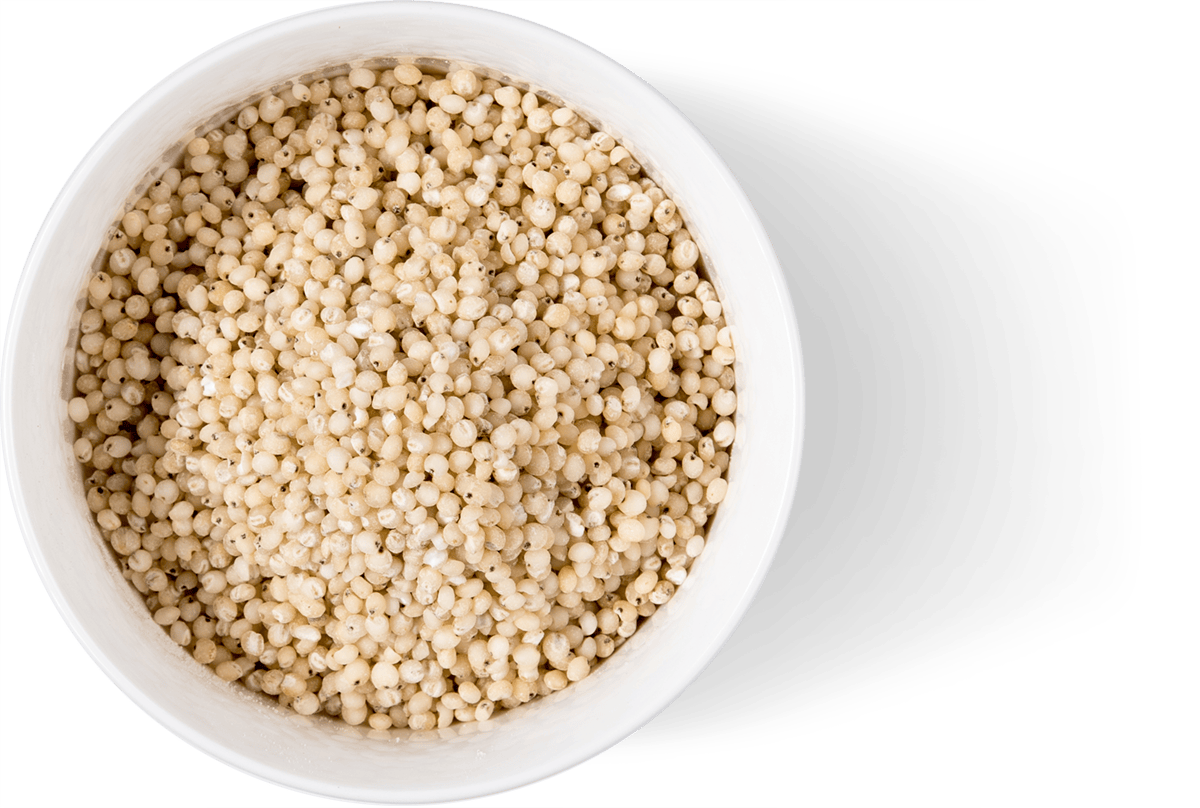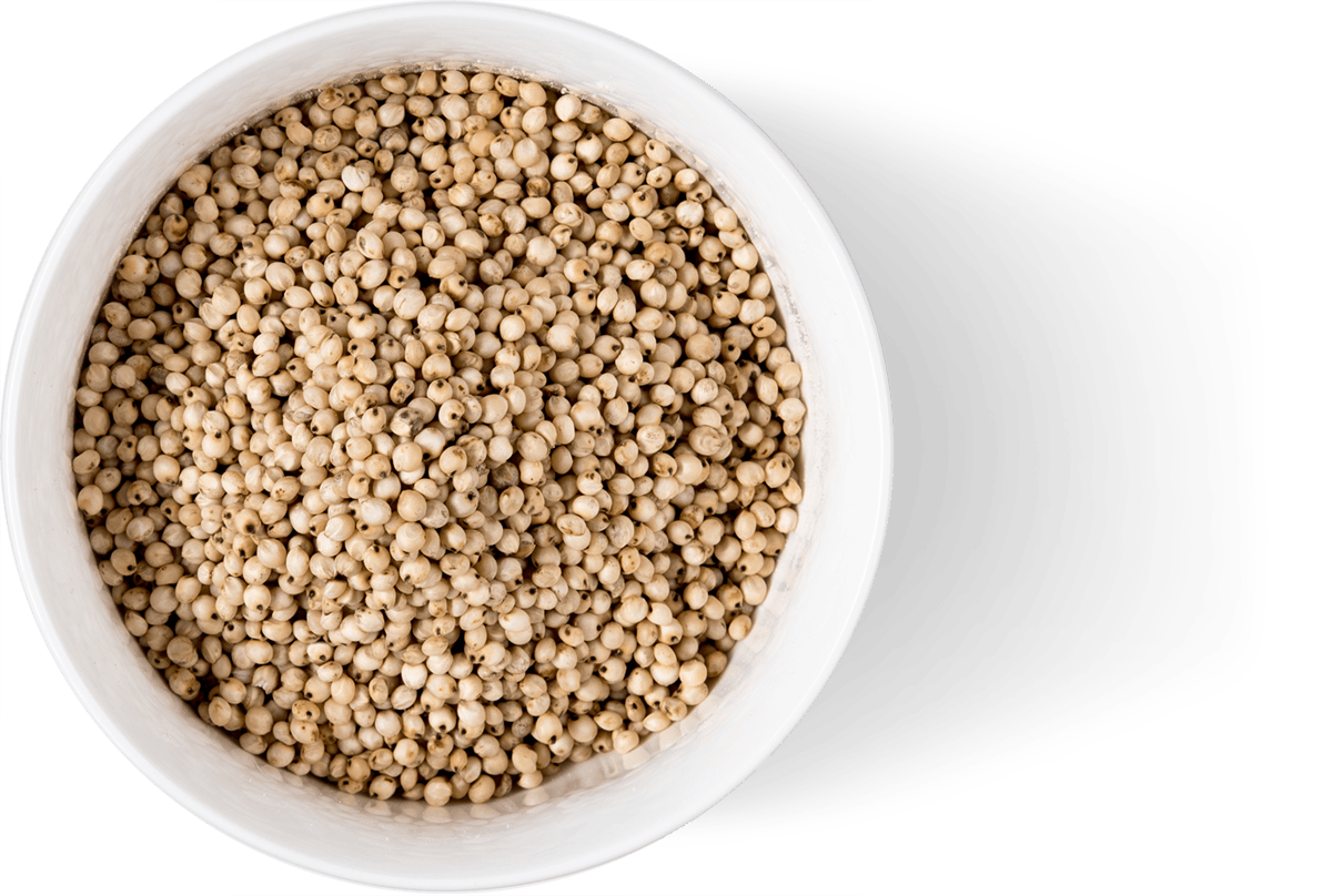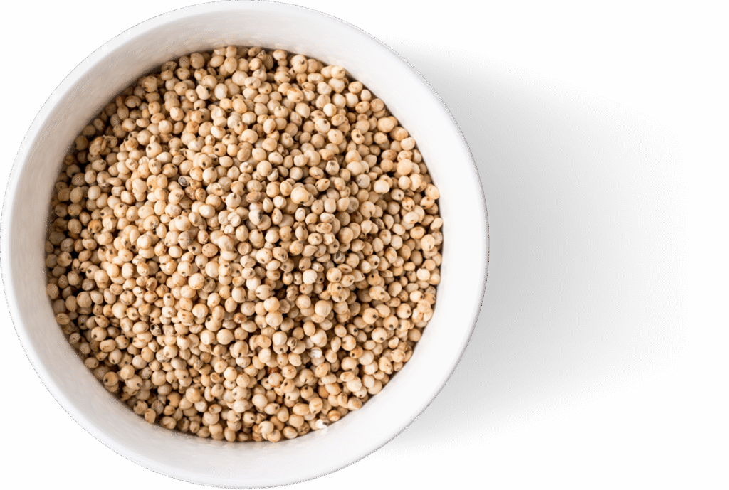 Pearled grain sorghum is the sorghum grain with the bran layer removed. Pearled grain sorghum allows for lower cook times and is an excellent option for gluten free couscous.